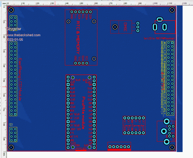 Just a thought... I don't know if both versions of the display have the same fixings, but would it make sense to make this a split board, each piece lining up on the display fixing holes but making up 100mm square before cutting? The two could be linked just by wires as there's not a lot of connections if you can put both display connectors on the same end as the PicoMite. It may not be possible if the display pins are too dissimilar in layout, but it's just an idea. Mick Zilog Inside! nascom.info for Nascom & Gemini Preliminary MMBasic docs & my PCB designs |