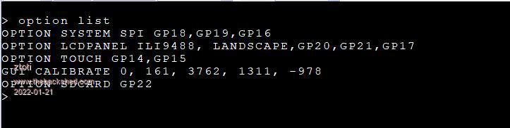 This is from my notes from quite a while ago. GUI CALIBRATE 0, 3950, 3882, -1244, -859 PicoMite, Armmite F4, SensorKits, MMBasic Hardware, Games, etc. on FOTS |