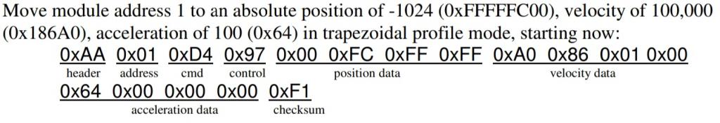 @Volhout Hey buddy ![]() I use a binary protocol with a simple checksum. I adopted it from "NMC" (network motion control). Never experienced a checksum error and if I did, that would indicate an electrical failure and the machine would simply shut down. Here is an example: ![]() That is an example of a command to move a motor. The motor could be a CNC axis or a robot, etc. So here is my rhetorical question regarding noise and error checking: What about the zillions of CNC machines and robots out there? The controller receives nothing but differential 5v pulses from each encoder. There is no error checking protocol and if a few pulses go missing, the axis is either out of position or has smashed into something. Furthermore, there is absolutely no way to keep these signals away from noise because the motors and drive-amplifiers (servo controllers) are reliant on high frequency PWM (many of mine are 100HP). In the days prior to differential transceivers, we had to be very careful but today it's a non-issue. So I personally wouldn't have a problem with ASCII transmissions without error checking/correcting BUT only in a case where there is no possibility of buss contention. ACK/NACK is a good idea, though. One big-name product that I have been using since the mid 80's is pure ASCII and returns ":" for ACK and "?" for NACK. Craig |