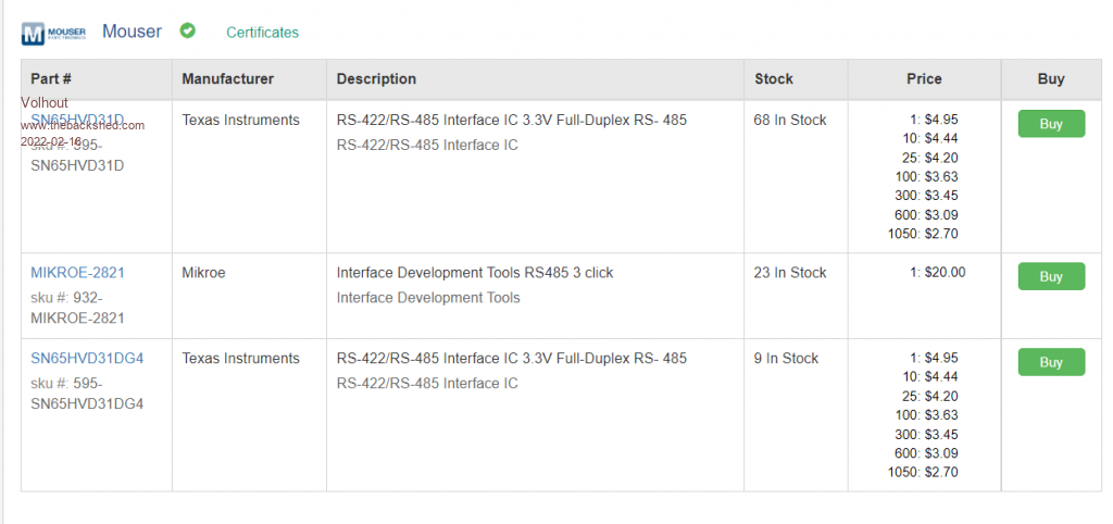 Can't get the actual SN65HVD31DR device until 2023. Seems that Digikey will have the Click module in March though. Craig Edited 2022-02-15 20:36 by Tinine |