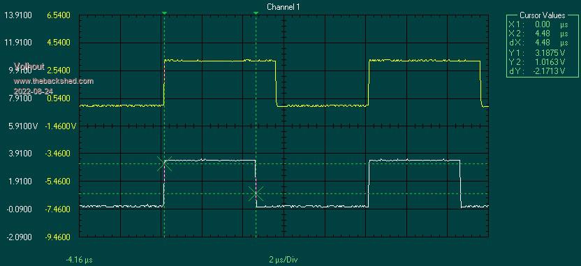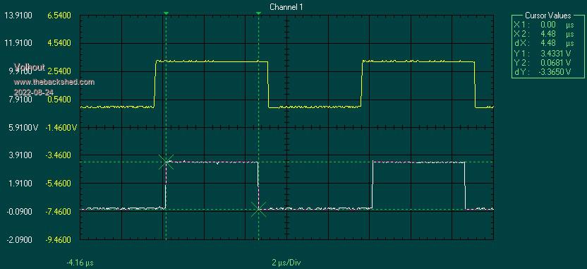 hi Volhout, that is a really neat hack, opening up a set of new and interesting applications for mmbasic ![]() it also demonstrates nicely the usefulness of being able to directly 'tinker under the hood', experimenting with new ways to use the hardware and perhaps even suggest a path for future tweaks to mmbasic that can then expose the functionality directly via existing basic commands. Peter, Geoff: is this mode ("Phase Correct Mode") of operating the PWM something that could perhaps be added as an extension to the existing PWM command in mmbasic for the pico, and possibly also the MX170? for instance, using a negative frequency to specify the alternate mode? Geoff did build a 'tweaked' version of mmbasic for the MX170 that exposed direct access to setting the PWM count value here: http://www.thebackshed.com/forum/ViewTopic.php?TID=14558&P=2#182207 in that example a negative duty cycle parameter indicated a count value was being supplied rather than a duty cycle. later in the above linked thread the formula for the maximum (negative) value is given. in the case of the pico there would be a similar relatively simple formula for the number of 'ticks' within each cycle - in my case i just used trial-and-error to find the approximate limit, then worked backwards from there cheers, rob :-) |