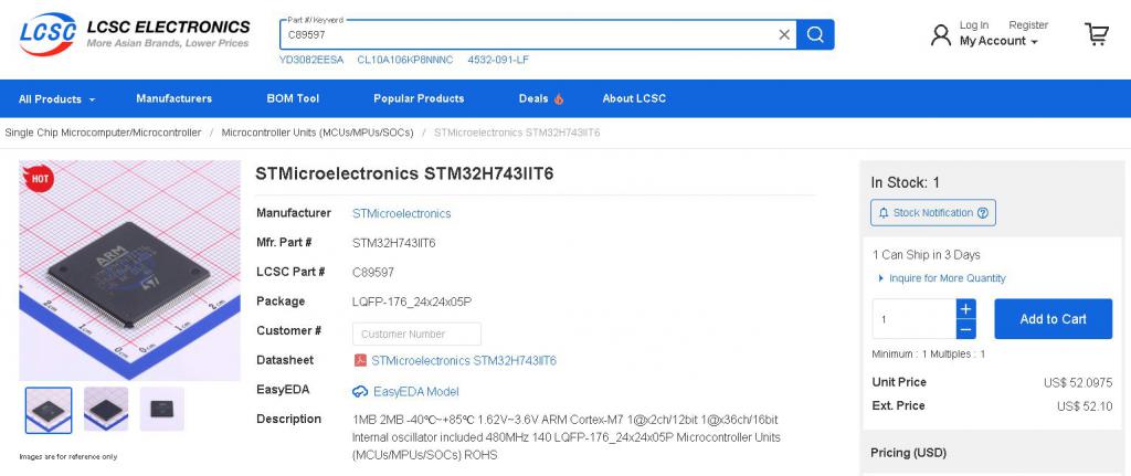 Good luck with the batch idea, geeken! LCSC says ONE in stock and can ship in three days. ![]() Smoke makes things work. When the smoke gets out, it stops! |