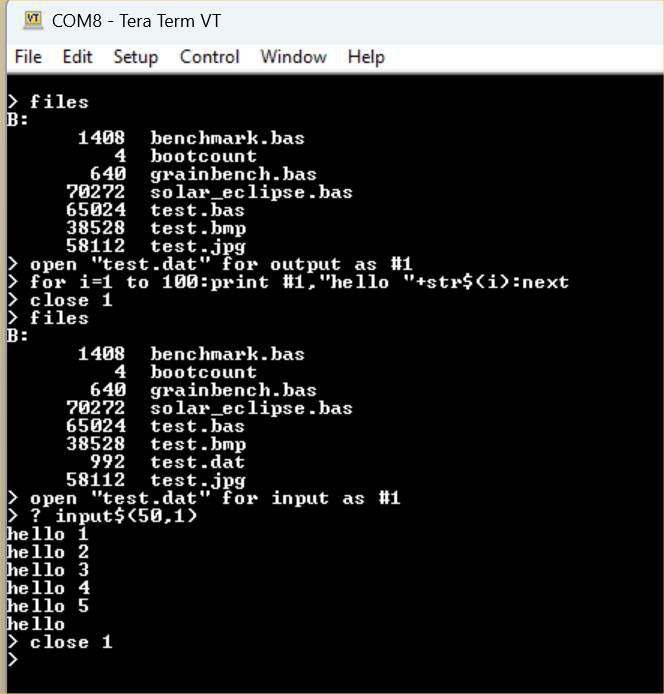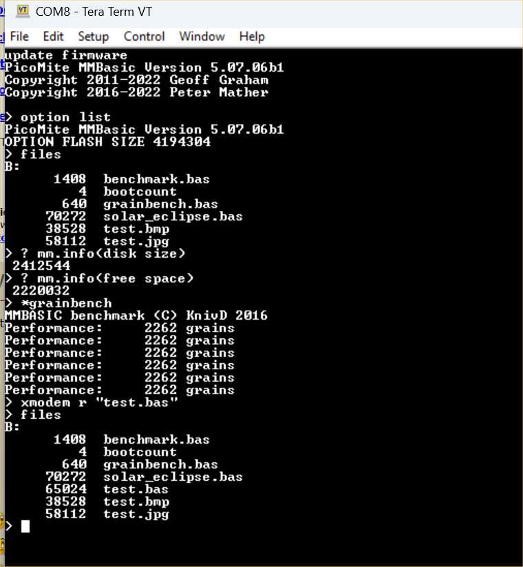 Forum Index : Microcontroller and PC projects : PicoMite V5.07.06 preview - flash file system