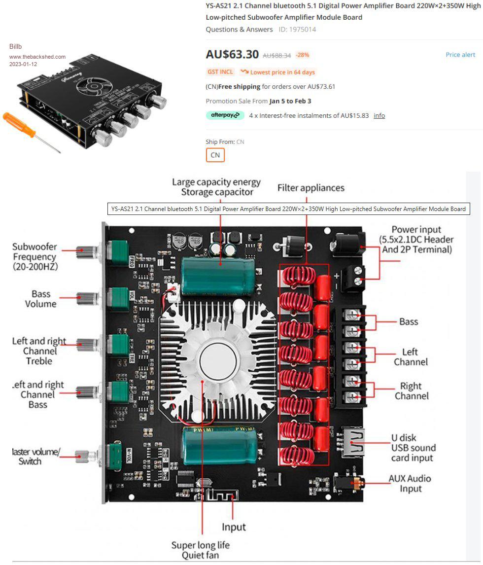 Considering it's absurdly cheap US$12 price, it works VERY well indeed.  With a 13.8v DC supply, it blows the room apart, with very nice control of both the sub volume AND the crossover frequency - a feature most 2.1 amps DON'T have, especially at this price point.