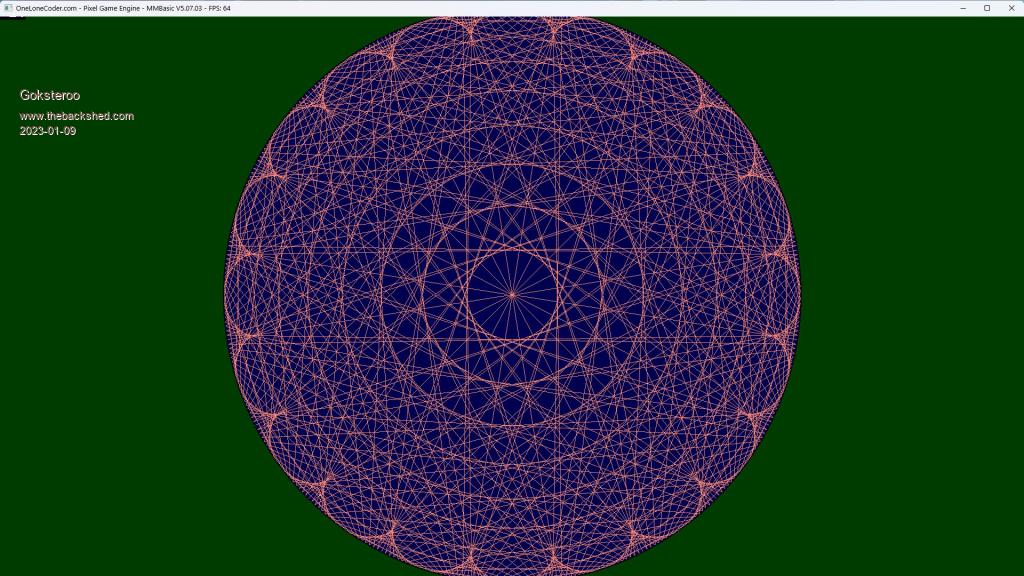 Try this on the PicoMiteVGA. The ant-aliased lines have a nice (but slow) effect. Use OPTION CPUSPEED 378000 to avoid boredom