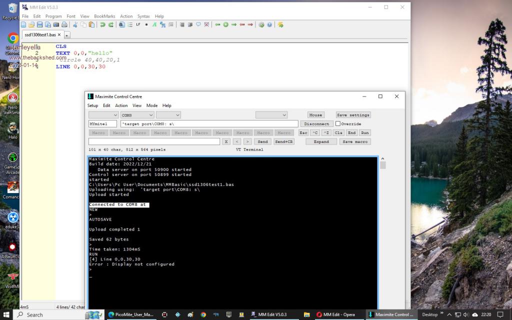 I new the panel was okay as I have a micromite set up as well, and that worked fine..