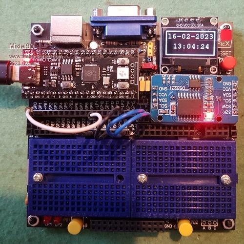 Laydees an' Gennelmen! We have a prototype for your delectation! Please excuse the flux grunge - I've no flux remover and isopropyl alcohol makes the board sticky. ![]() ![]() ![]() If you need more breadboard area you can expand it at the right-hand end, just directly outwards or with more breadboards above and/or below the first one. This is also a pretty good illustration of why you should avoid black or blue breadboards - the holes are harder to see. :) Incidentally, the two blue Dupont leads are connecting the I2C bus to the PicoMite (a YD-RP2040). Not tested with VGA and PS/2 yet. Mick Zilog Inside! nascom.info for Nascom & Gemini Preliminary MMBasic docs & my PCB designs |