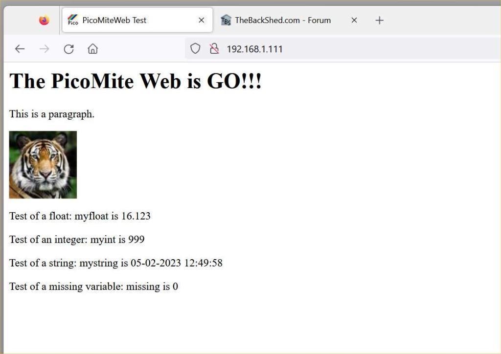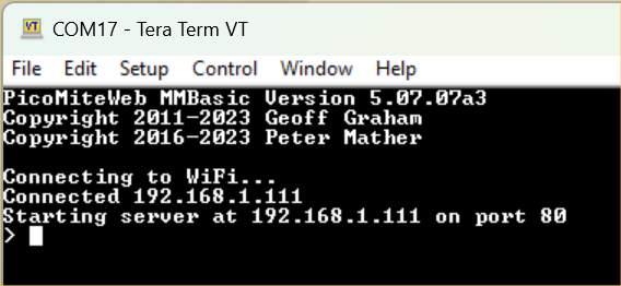 Forum Index : Microcontroller and PC projects : PicoMiteWeb firmware for the Pico W - now making real progress