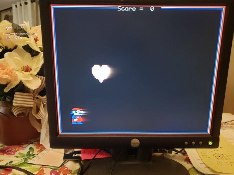Since it's cold out here in the usa I have been programming again. Run mario around and catch the dropping objects for points. Don't catch the fireballs, they take points away. As your score goes up , the objects drop faster. It plays ok , but has some collision problems that leave artifacts on the screen some times. Games goes on but looks kinda messy. Any pointers on fixing this would be greatly received, as I would learn from this too. This was programmed for the picovga version. Seemed we need some more games for this platform.