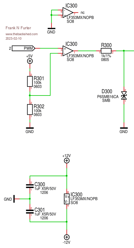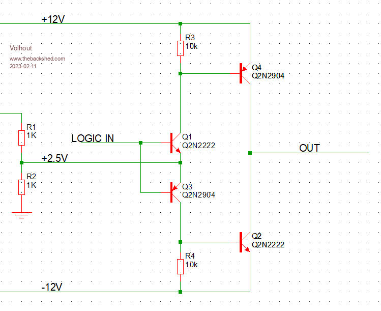 At the moment it is solved via an operational amplifier. Unfortunately, this does not work rail-to-rail and suitable operational amplifiers are currently not readily available (and/or very expensive). However, voltages as close as possible to + and - 12V are needed.