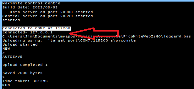 Started Teraterm, connect to com8 of PicoW.