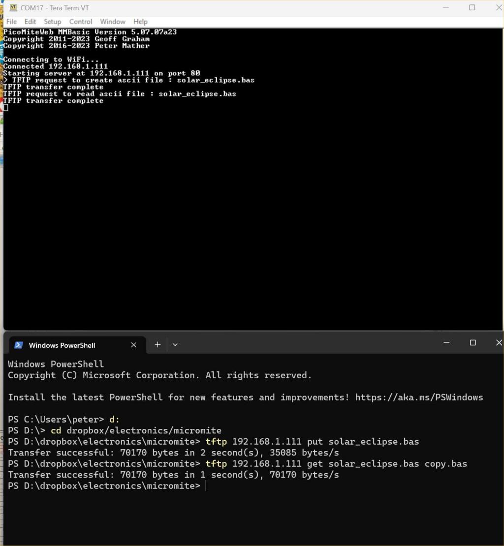 Forum Index : Microcontroller and PC projects : PicoMiteWEB V5.07.07a24+ - Now with TFTP