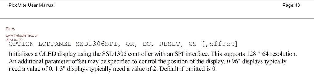 OPTION LCDPANEL SSD1306I2C, OR [,offset]