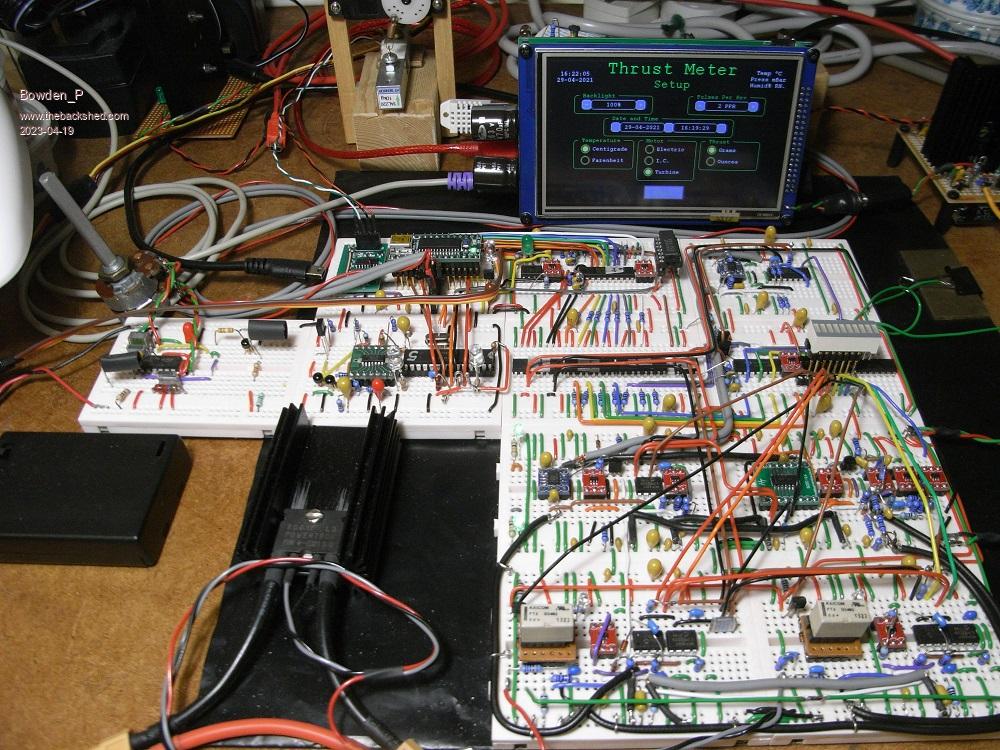 The circuit is controlled by an MM Explore 28, linked to an MM+ Explore 100 backpack, which caused significant noise issues from the TFT screen until isolated.