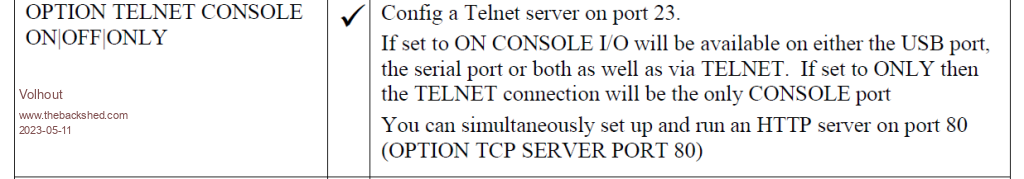 Forum Index : Microcontroller and PC projects : WebMite: Telnet with Tera Term
