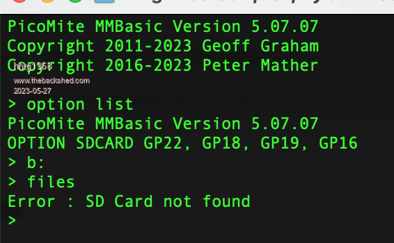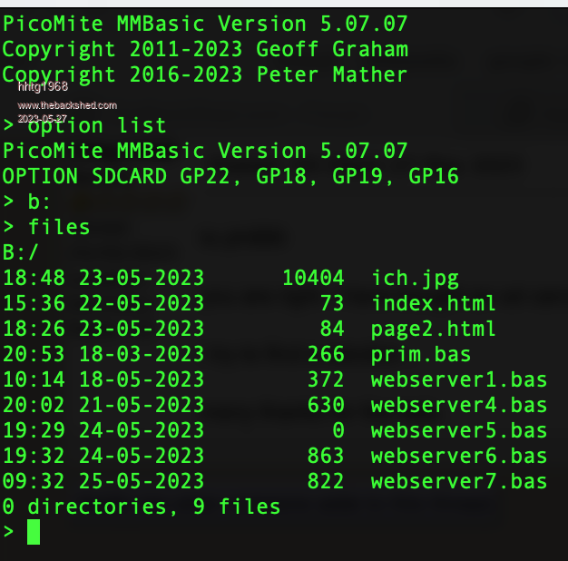 and i can enter "b:" with no error, but "files"  leads to "... sd card not found"