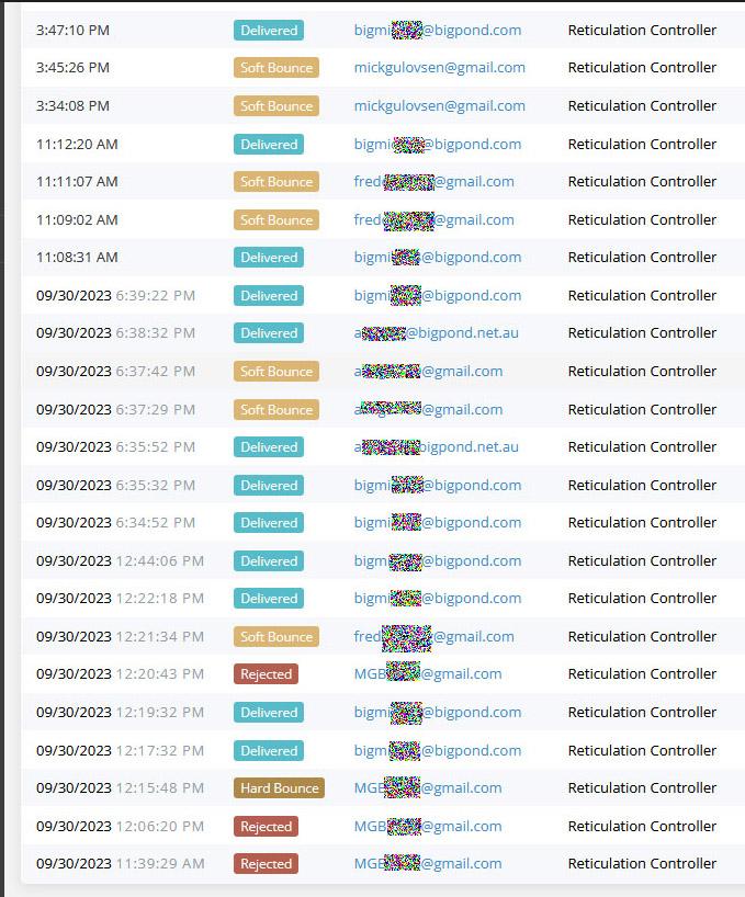 As you can see, every GMAIL send attempt is either Rejected, Hard Bounce or Soft Bounce including to AndrewG's GMail accts.
