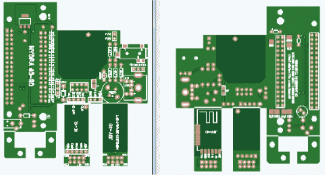 As far as I can tell it's ok. :) You need x-ray vision to see the two inner layers. The little L-shaped pieces support the loose end of the Armmite on 5mm pillars on the back of the display. The two long, narrow boards are optional COMM modules. All these need to be cut off, but I've allowed a little leeway so that they could be cut with a fine saw or probably even a junior hacksaw without encroaching on anything important. The "proper" assembly is intended to be dome like the Hydra board, except that the L-shaped pieces are supplied. If you power from the USB connection: Fit a wire link from the serial port 5V pin to the Hydra 5V pin. Ideally you shouldn't fit the regulator - I forgot to fit a link here. What will happen is that the outputs of the Armmite regulator and the Hydra regulator will be in parallel. That shouldn't cause a problem as the load is nowhere near the full load of a single regulator so current scaring isn't an issue. If you haven't actually placed the order yet I'm quite willing to include a link and re-do the gerbers. If you want to power from the external 5V connection: You will need the regulator as it powers the Armmite at 3V3. Note that you always need 5V to the board from somewhere if you want the PS/2 keyboard. Mick Zilog Inside! nascom.info for Nascom & Gemini Preliminary MMBasic docs & my PCB designs |