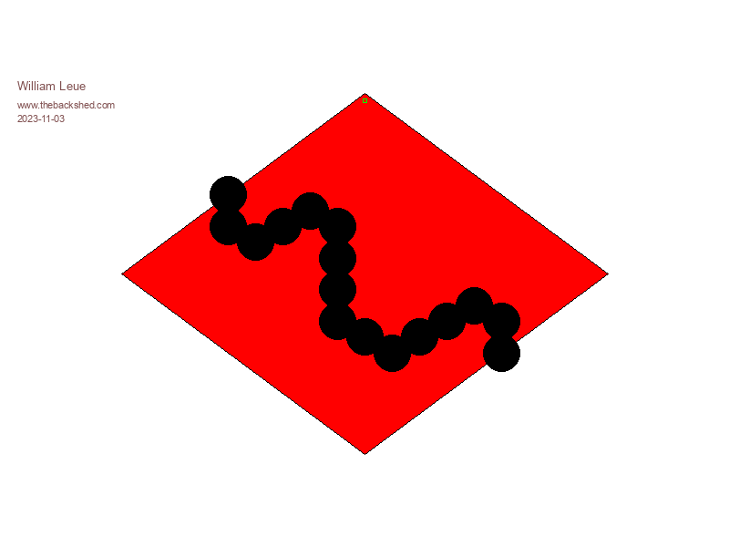 I create the image by drawing the 4-sided polygon, then drawing the solid black circles. Then I do pixel fill x, y, rgb(red) at the pixel that is marked with the small green square. (the green square is drawn AFTER the fill.) As you can see, the large polygon constrains the fill so that it does not escape into the outside of the polygon, but it somehow does fill the lower half of the polygon, leaking past the totally opaque black circles.