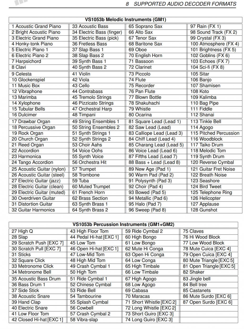 Together these allow you to use all the channels, instruments and notes the VS1053 is capable off