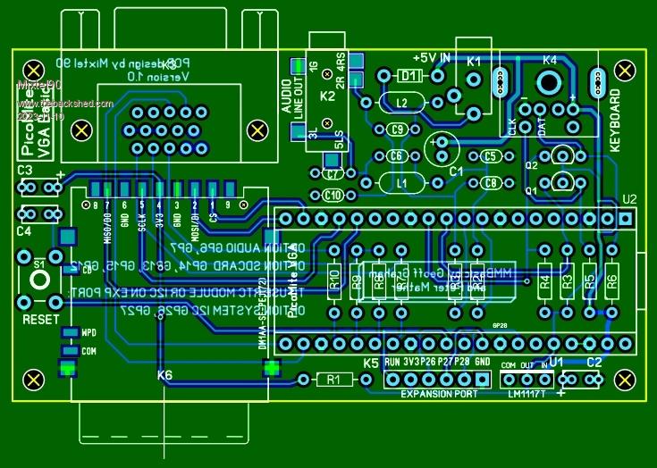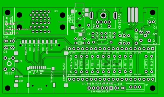 Nice Mick, This is what I had in mind. Just looking at how the pins connect to the pico, the routing could be easier if you change the order of the connectors to K3(VGA)-K4-K2-K1. But this should be fine as well. I wonder if the LM1117 package is corrcct to size. Volhout PicomiteVGA PETSCII ROBOTS |