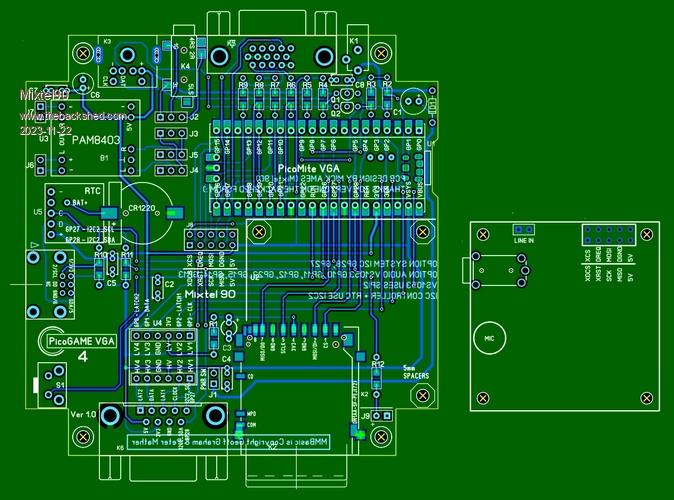 I'll change the VGA connector to RJ45 8P8C, I think. It's smaller, you can get cheap converters very easily and it would give me more board space. I2Cis better on a 6P6C connector, or even a 6P4C.  Only half joking. I did this on PicoGAME 3 (unreleased). :) Actually, I like VGA on a RJ45. The leads are cheap and can be more flexible. I tried it over about 3m and there were no problems. And there *is* a sort of standard for it, which is why you can buy ready-made converters. :)