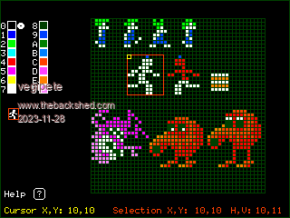 I've included two workbench saves. Put the .BAS and the two .TXT files together on your PicoMiteVGA somewhere. Run SpriteDraw01R.bas from there. Open TestSprites.txt to see the above image. (Use the help menu to learn the keys for moving the cursor and the selection region around, resizing, etc.)