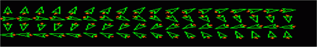 As I said, this was to test some things. The little demo uses 144 sprites. I wasn't about to draw them by hand. Instead, the ship was defined by 4 points, rotated to each angle and drawn. The images were then read and converted to CSub data.
