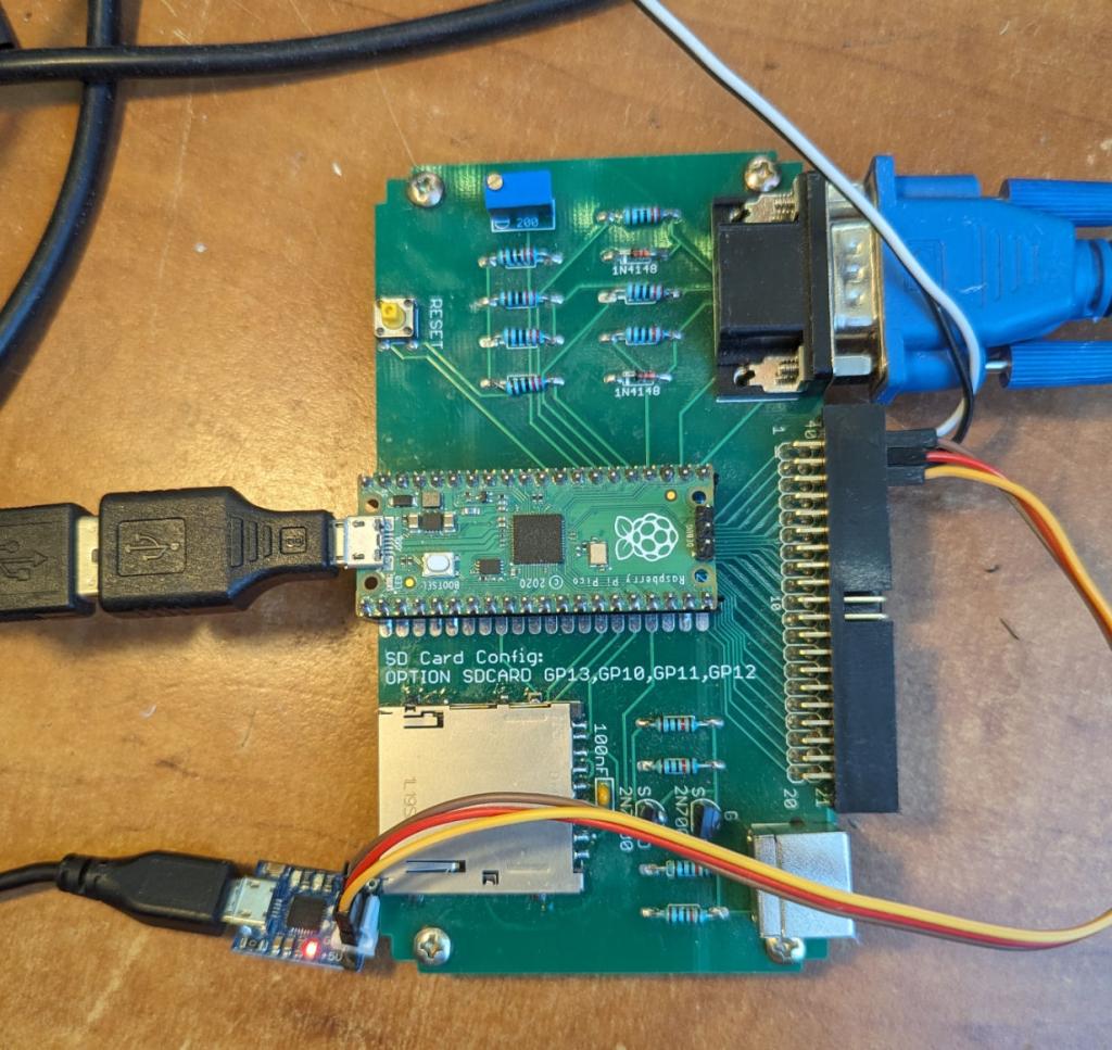 A serial console will be enabled on GP8 and GP9 (replacing the PS2 keyboard) - this needs an external TTL-USB adapter (CP2102 or equivalent).