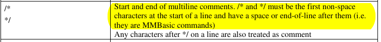 I'm using the newest release of picomite code and perhaps my error is not understanding the wording in the manual regarding multi line comments.