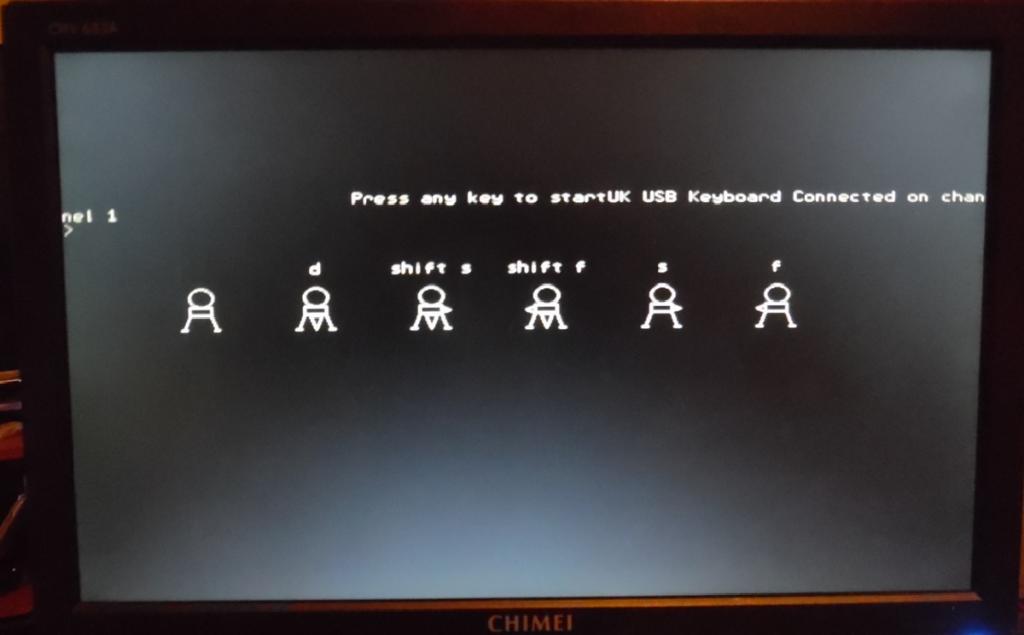 hi. if I power up vga usb and autorun on then prog starts, cls.. prints message but then message about keyboard gets printed.