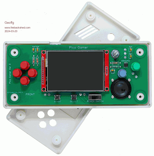 The April issue of Silicon Chip magazine is hitting the streets about now and it features the Pico Gamer. This is a game playing console similar to the Nintendo Game Boy Advance but using the PicoMite. It is based on thwill’s concept for the Game*Mite but with a 3D printed case, a different circuit and different firmware. It is however software compatible, so games written for the Game*Mite will run unchanged on the Pico Gamer and vice versa. The default firmware comes with most games available on the Game*Mite (with the authors' permission) plus my versions of Pac Man and Tetris. Adding more games is easy, just copy them to the PicoMite’s drive A: and they will immediately appear in the menu. ![]() An important component is the 3D printed case which can be made by many companies in China, typically costing less than US$20. The case has a smooth rounded feel which sits well in the hands but it’s most important feature is that it holds the switch buttons steady – without this buttons have too much side to side “wobble” which ruins the game playing experience. The design files are on my website ready to be sent to China. ![]() A full description plus all the construction data and firmware is on my website at: http://geoffg.net/picogamer.html. You can watch a short video describing the Pico Gamer here: https://youtu.be/Koi4JSnmtNg Silicon Chip has made a video demonstrating the games: https://www.siliconchip.com.au/Videos/ Silicon Chip is selling full kits plus some components (PCB, case, etc) here: https://www.siliconchip.com.au/Shop/?article=16207 If you are going to build it you should also consider purchasing an electronic copy of the April magazine (AU$10) as it goes into more detail. The online and downloadable versions of the April issue will be available from 28th March here: https://www.siliconchip.com.au/ I have a web page describing the design of the 3D printed case here: http://geoffg.net/3D_Printed_Cases.html Credit to thwill for thinking up the Game*Mite. It is a great concept. Geoff Edited 2024-03-20 16:51 by Geoffg Geoff Graham - http://geoffg.net |