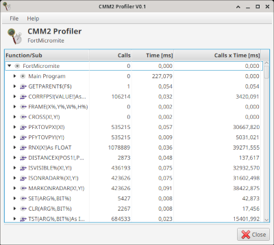 It tells you how many times a specific Basic line is executed and how much CPU time that line uses. This allows you to tune performance of the application. Unfortunately, the mechanism uses a lot of memory so can't be copied to the PicoMite (before anyone asks   )