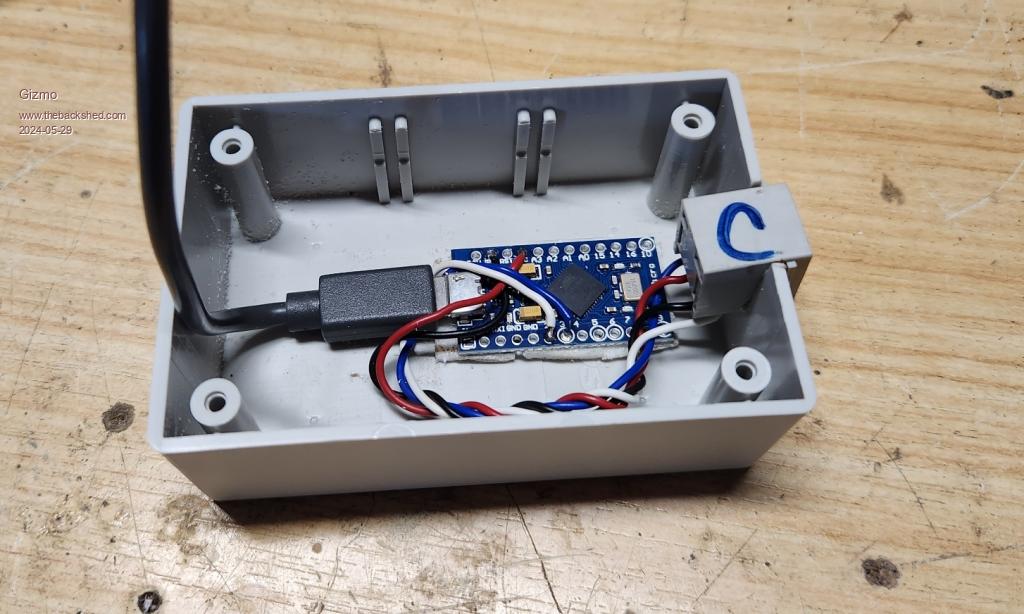 I mounted the Pro Micro into a little box. Some people mount it inside the WYSE keyboard, and I decided to go this way as I wanted to use the WYSE keyboards spiral cord.