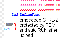 I realise that I should already know this but: If I have my MMBasic source file on my Tablet and I want to send it to the PicoMite via Bluetooth serial, what kind of header do I need to send? I understand that the file needs to be terminated with ctrl-z, right? |
