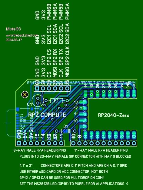 Mine's more fun - and has USB-C and provision for COM port multi-drop. It also has a WS2812B and reset button. :) And the RP2040-Zero is cheaper, although you have the PCB cost. PS I can move the multi-drop to COM2. It might be worth it... Edited 2024-06-18 20:45 by Mixtel90 Mick Zilog Inside! nascom.info for Nascom & Gemini Preliminary MMBasic docs & my PCB designs |