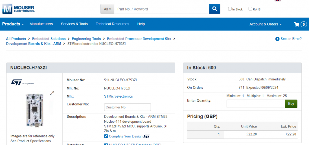In fact, the Mouser price for the new Nucleo is better than AliEx: