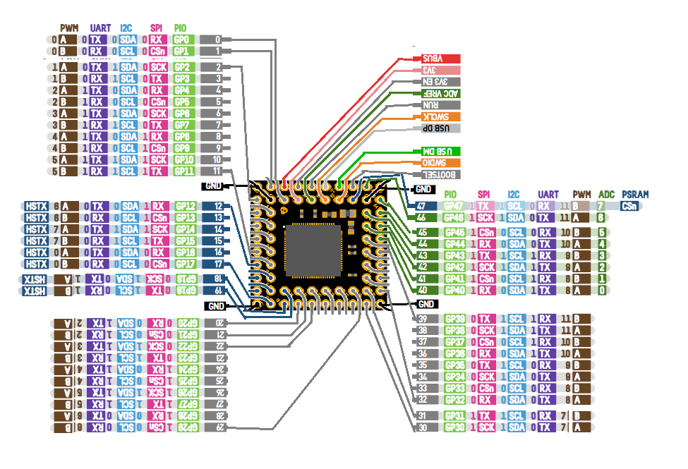 I really don't like the idea of restricting the IO pins by putting stuff on-board that really shouldn't be there because you can't switch it off or ignore it and use those pins. That's been done in the past and it feels like it's crippling the system. If you want a crippled system to experiment with then you already have it - the Pico 2. If you want a full bells and whistles system then you still have to wait - the PGA2350 isn't quite there as the QSPI bus isn't exposed on the pins (or on pads AFAIK, I've never seen underneath one). Anyway - it needs someone proficient in using multi-layer boards and SMD to sort something like you're talking about, Rob. I'm the wrong bloke for that. :) Mick Zilog Inside! nascom.info for Nascom & Gemini Preliminary MMBasic docs & my PCB designs |