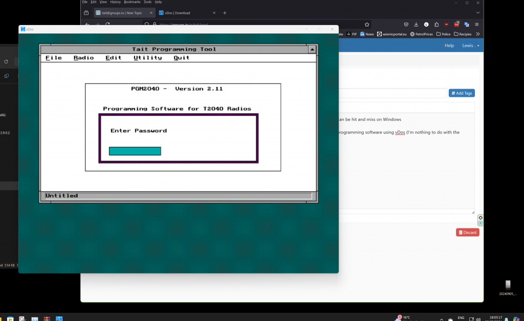 If anyone has Windows and wants to run genuine Dos programs vDos will do it link to vDos I needed to run a Tait radio programmer and there was no way on earth it would run in Windows 11 but it works quite happily using this emulator and best of all it's free for personal use I know very few will have need of something like this, but if it helps just one person it was worth posting. ![]() ![]() ![]() ![]() ![]() ![]() Edited 2024-09-06 03:29 by lew247 |