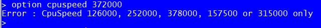 Then having typed OPTION RESET OLIMEX, I thought how about just changing the PLATFORM option to HDMIBasic (leaving the SD pins as they should be). All looked good, so went ahead and changed CPUSPEED once again to 372000 and up popped the same error messages as above concerning invalid speed value (having tried 378000 too).
