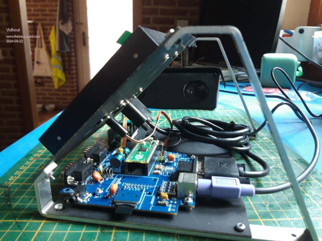 And audio amplifier, and 2 5cm speakers complete the rig. The speakers are different, but what the heck, they make sound....