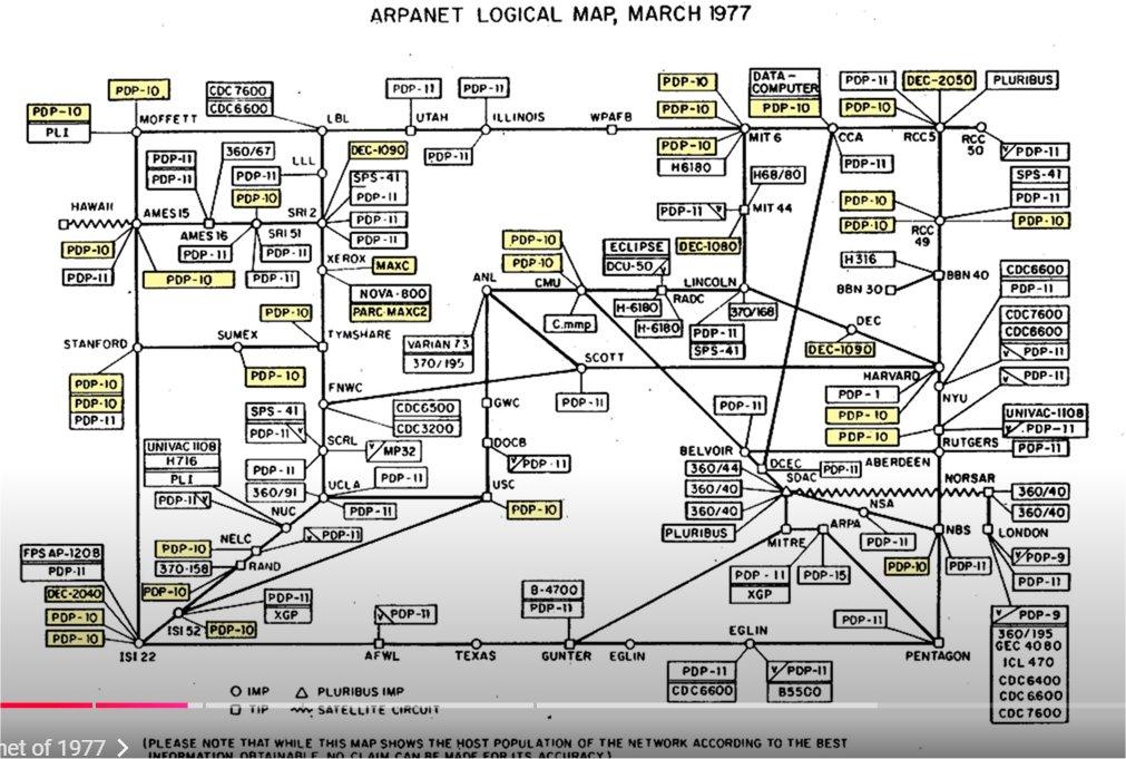 From that link--the entire internet as of 1977. I recognize about half the nodes. ![]() NORSAR (connected by a squiggly line--"satellite circuit") and connected to it, London, are the only non-U.S. nodes (unless there's a Canadian node in there somewhere). I had to google NORSAR--"NORSAR is a foundation established in 1968 as part of the Norwegian-US agreement for the detection of earthquakes and nuclear explosions". Ah, nuclear explosions. And look now--"all growed up". Edited 2024-10-05 00:24 by lizby PicoMite, Armmite F4, SensorKits, MMBasic Hardware, Games, etc. on FOTS |