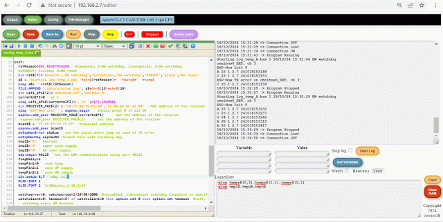Thanks for the fast answer. I was planning on using the NodeMCU for a mall project. But the development of that project would be tedious in this editor (constant scrolling, especially since basic only allows 1 command per line). Unless there is some configuration I can change to set the vertical edit screen to 30 lines or so. I'll find another solution (Buy an ESP32, or use WebMite).