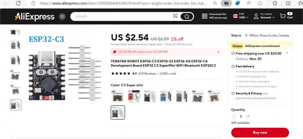 I'd certainly recommend buying an ESP32 (or 4 for free shipping), especially the ESP32 C3SuperMini :