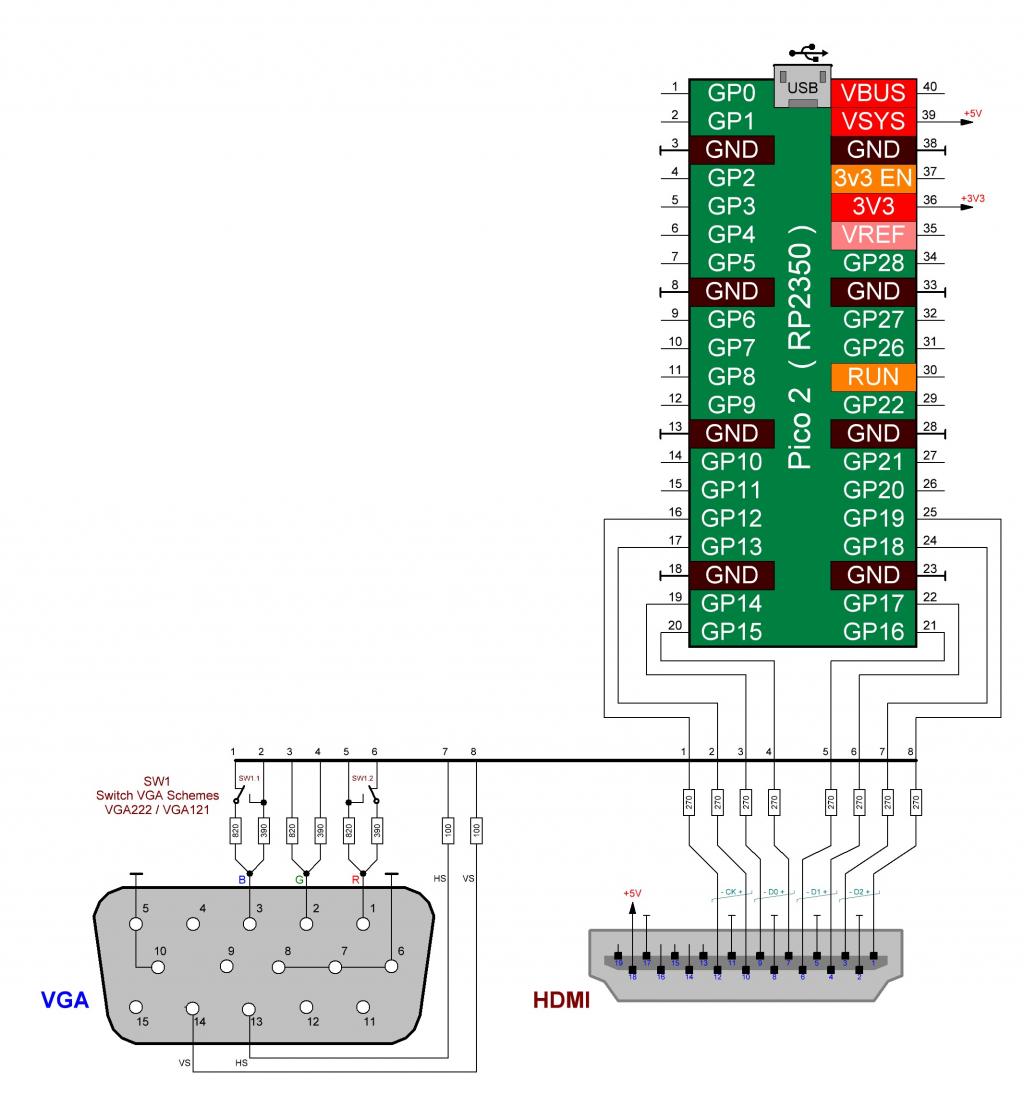 I'm mot sure about this on the Pico 2 at the moment. The HSTX port runs *far* faster than a Zero can manage. You will almost certainly be limited to 640x480 in HDMI and that's if you are lucky. The loading on the Pico's pins is also very heavy with those resistor networks and that too will make things marginal. It'll probably work fine in VGA, of course, as it's much less demanding. I love the design though. :) Mick Zilog Inside! nascom.info for Nascom & Gemini Preliminary MMBasic docs & my PCB designs |