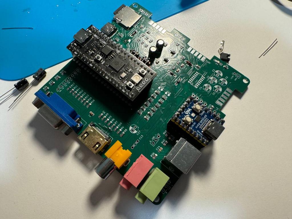 You can also try to fit a VGA video output there, connected in parallel to the HDMI with its own resistors. This solution has already been tested in other projects and does not interfere with each other's work. Also implement a VGA color bit depth switch VGA121/222 for the VGA, which will make it possible to port many console emulators to this board. |