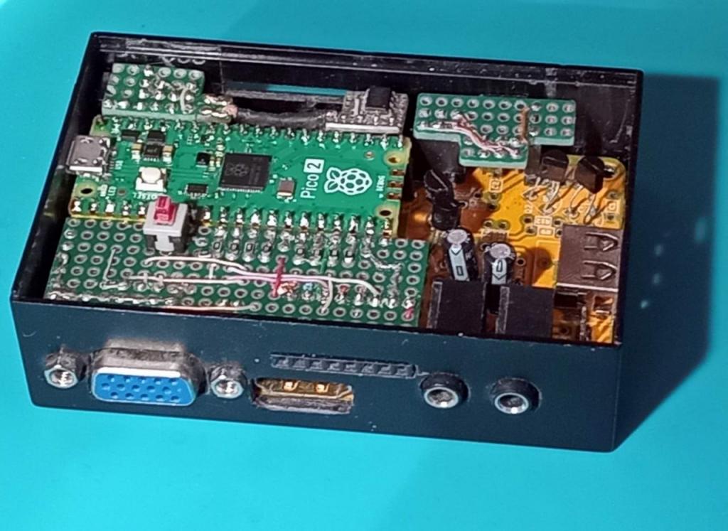 Talk about the minimum length of the HDMI tracks on the board is untenable since the cable is much longer, here it may be a matter of their identical length, but it is not so critical. Yes, in the dimensions of your case, perhaps everything will not fit, I would just like to get a universal design that could work with both VGA and HDMI video output. Once again, I inform you that such a solution with parallel connection of two video outputs to Pico2 has already been tested and works fine. There is also a way to automatically detect the type of connected video interface when starting the program based on the state of the input ports. |