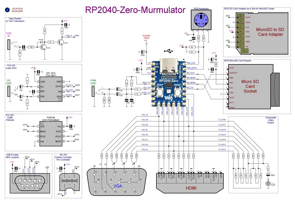 They also use pins from the bottom of the pico zero. You could just as well take a normal pico. If you have the 220 ohm resistors close to the PIO pins, vga and hdmi will not be affected much. But you can never plug both. The I2C bus (gp14-15) does not have pull-ups. I wonder if the build in pull-ups will work with a nunchuck. Volhout Edited 2024-11-05 02:34 by Volhout PicomiteVGA PETSCII ROBOTS |