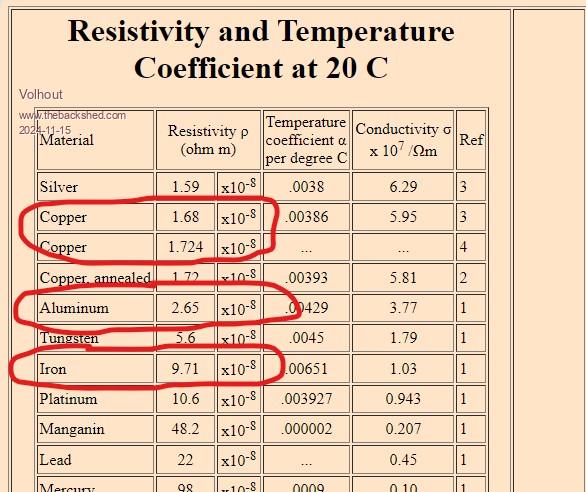 Hi, Aluminum is fine, it is only 1.5x higher resistance. Iron is bad, it is 6-7x the resistance of copper. ![]() Volhout PicomiteVGA PETSCII ROBOTS |