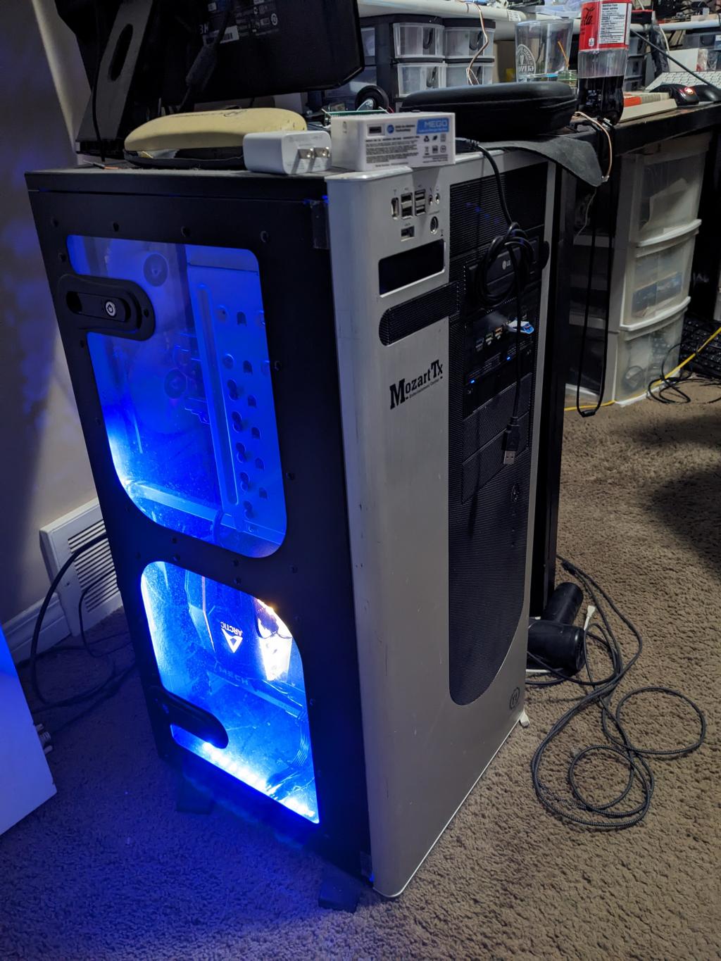 I would love to claim that my daily driver is 18 years old.... But it's pretty much Trigger's Broom (for British folks) or the Ship of Theseus (if you're posh). I got the case in 2006, and have probably upgraded every component in it four or five times over that period. But I have just never come across a better case in the last two decades. As far as computer components go - it's easily the best value for money I've spent. I've updated the fans a couple of times (currently 8 x 120mm cooling fans, which is ample cooling even when they are just ticking over). But the reason I love it is that it's just so easy to work inside. A hinged door on one side gives access to the motherboard and another hinged door on the other side gives access to the drive bays (5x5.25" and 7x3.5") and power supply. I don't actually use any of the 3.5" bays, preferring to mount my non-M.2 SSD's in Caddies in some of the 5.25" bays. I suspect I'll keep it for many decades to come (or until computers evolve so much that they non longer use the traditional motherboard/card layout). Even then, it'll make an interesting side-table |